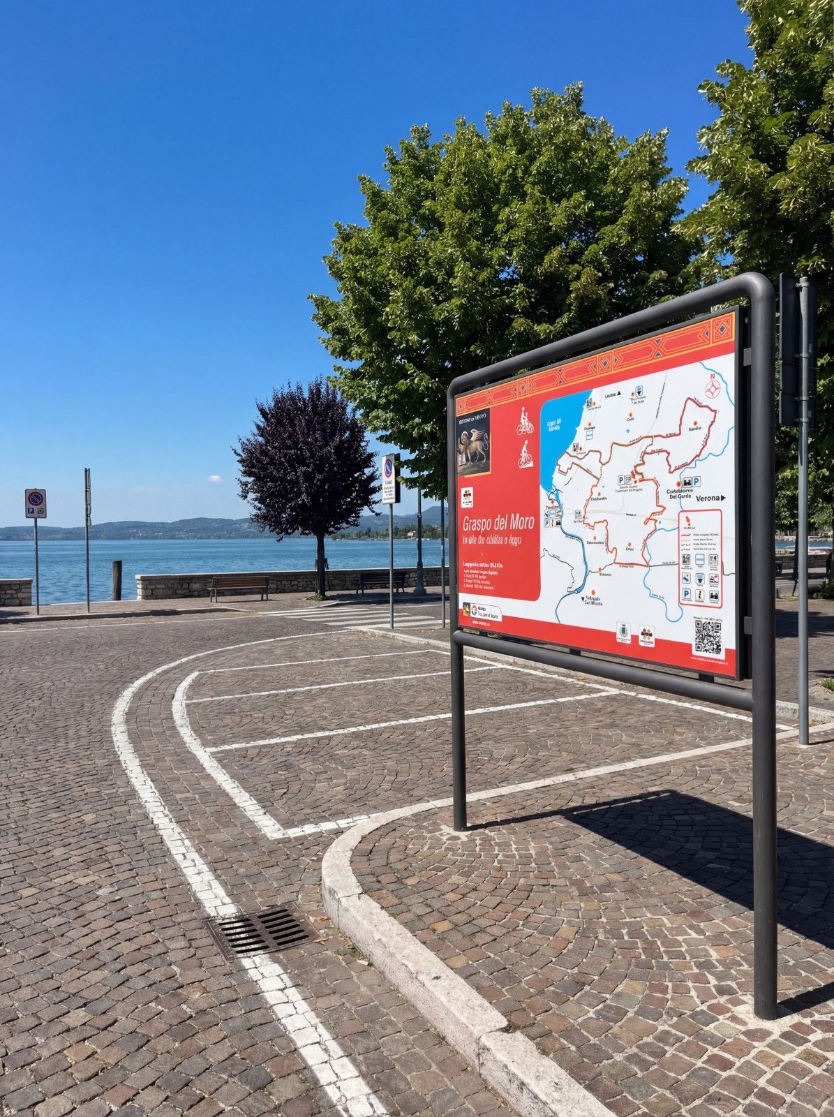 Il Graspo del Moro è il percorso storico centrale della South Garda Bike Region. L’anello principale attraversa vigneti, strade di campagna e dolci colline moreniche tra Castelnuovo del Garda e il lago. Lungo il tracciato, tre anelli più corti — Oliosi, Ronchi e Sandrà — offrono distanze diverse per esplorare il paesaggio in bici.